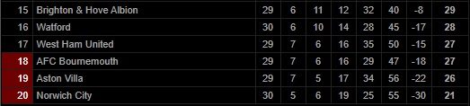 ส่วน วัตฟอร์ด รั้งอันดับ 16 มี 28 แต้มจาก 30 นัด ยังต้องหนีตายต่อไป