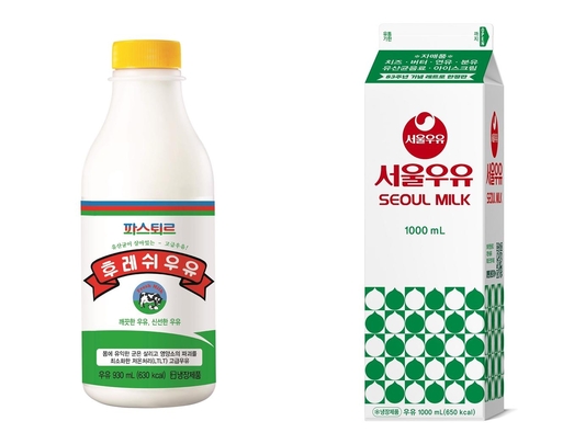 서울우유도 창립 83주년을 기념해 물방울 디자인으로 익숙한 '레트로팩' 1000ml 제품을 최근 선보였다. 파스퇴르와 서울우유는 두 복고판 제품의 가격도 10년 전으로 인하했다. 파스퇴르의 후레시우유는 2600원, 서울우유 레트로팩은 1930원에 판매 중이다.