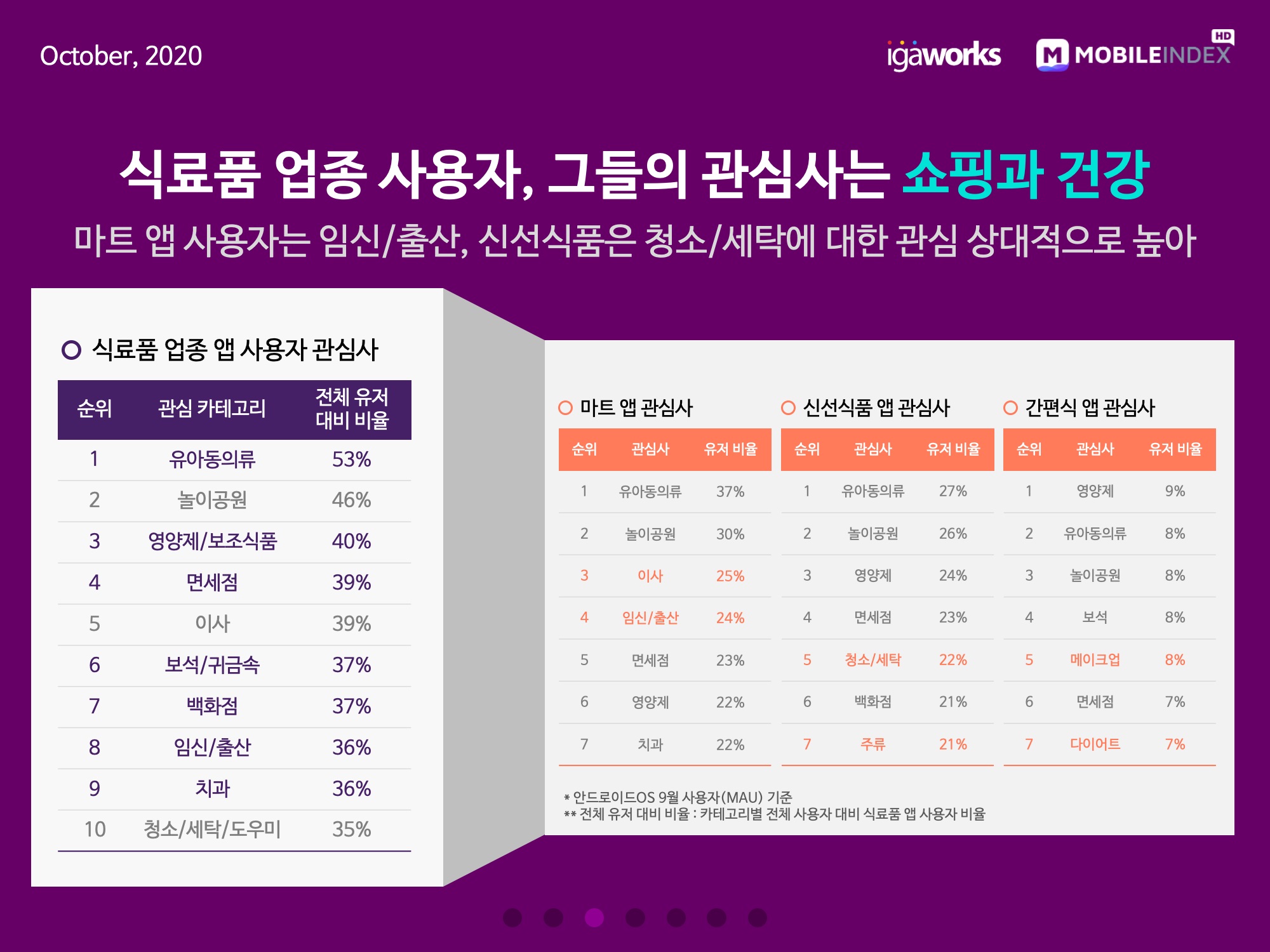 식료품 모바일 앱 사용자 유아동 관련 주제 관심 높아