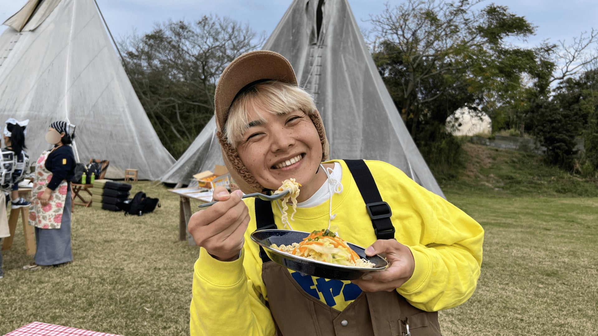 そのうまかっちゃんを使って、キャンジョがキャンプ飯バージョンにアレンジレシピを考案。福岡でも人気のキャンプ場、唐泊VILLAGEにて体験イベントを行いました。