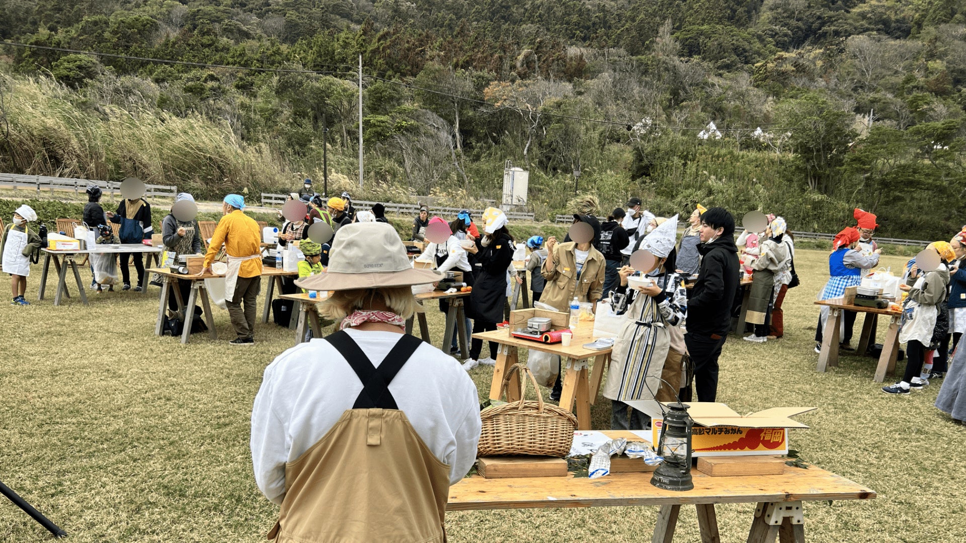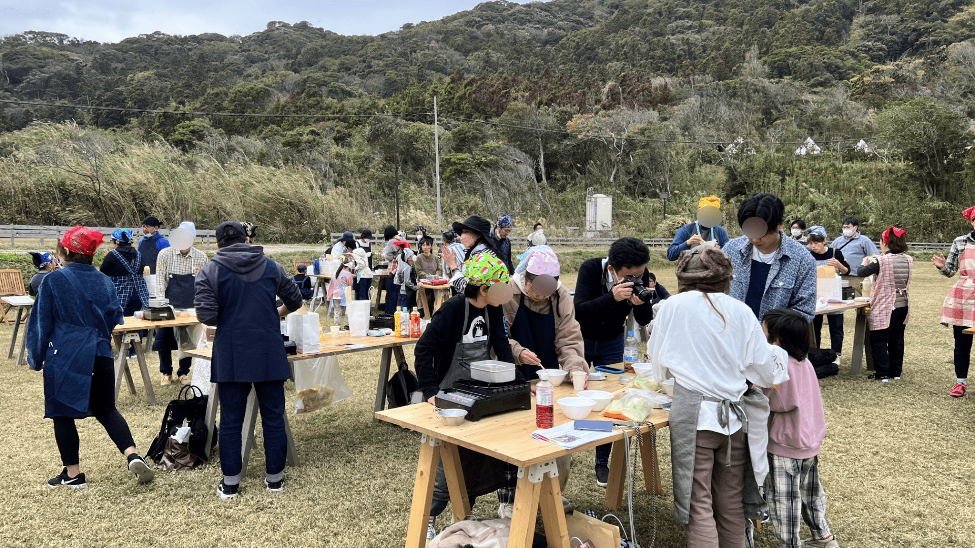 【参考写真-うまかっちゃんと糸島野菜 キャンプ飯を楽しもうin唐泊VILLAGE、当日の様子】